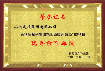 开云线上平台集团过硬的工程质量,优秀的履约能力,得到了业主单位的高度肯定,被新希望集团授予“优秀合作单位”称号。