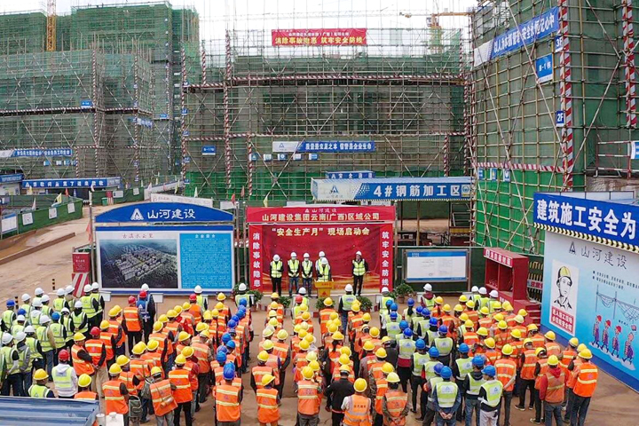 5月29日,以“消除事故隐患,筑牢安全防线”为主题的开云线上平台建设集团云南(广西)公司2020年度“安全生产月”现场启动会在古滇水云里项目部举行,来自公司各项目的管理及施工人员等200余人参加了活动。