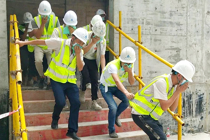 紧急逃生演练中,当现场警铃响起,参演人员严格按照演练步骤,从发现火情、启动应急逃生、疏散人员、到达安全集合点、清点并检查人员伤病情况,整个演练过程环环相扣,紧张真实,井然有序,达到了预期的效果。