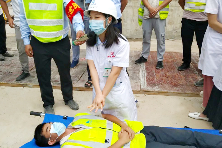 为提高项目管理及施工人员的安全意识,检验应急反应能力,项目部还邀请遂川县仁爱医院的医生开展急救培训演练,主要内容是伤员情况检查、人工呼吸、心肺复苏等,提高了项目部处理突发公共卫生事件的能力,确保在紧急情况下做到调度有方、措施得当、出诊及时、救治有力。