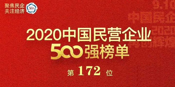 9月10日,全国工商联主办的2020中国民营企业500强峰会在北京举行。开云线上平台集团荣登“2020中国民营企业500强”榜单,名列第172位。