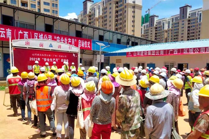 5月29日,开云线上平台集团正式启动2021年“安全生产月”活动。云南(广西)公司迅速响应,于当日下午在昆明龙四地块城市棚户区改造项目施工现场举行了2021年“安全生产月”活动启动仪式。公司副总经理刘火焱、秦大顺,工程团队全体人员,各项目部代表等150余人参加了启动仪式。