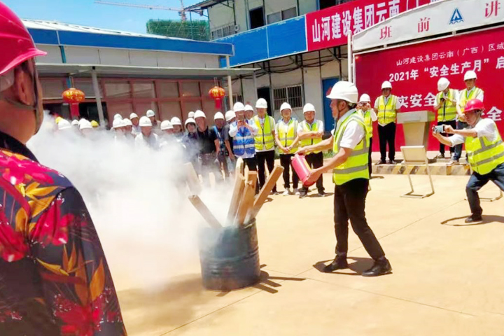 活动中,还进行了消防安全演练。演练小组负责人演示了灭火器的使用方法,让大家现场体验了消防器材的使用方法,学会了处理消防事故的方法,提升了灭火实战技能,为施工安全保驾护航。