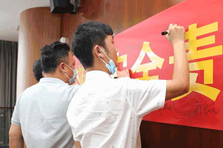 筑品质开云线上平台,成百年基业,是集团上下的共同愿景,更是开云线上平台人行稳致远的实际行动。活动最后的安全承诺签名仪式上,与会人员依次上前,在印有“落实安全责任 推动安全发展”主题的红色条幅上签下自己的名字,把承诺写下来,记心上,以行动履行岗位职责,坚定信心做好安全生产工作。