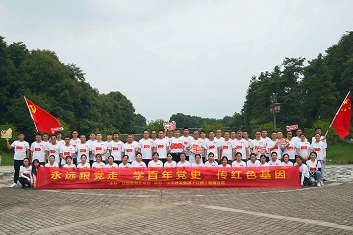 为庆祝中国共产党成立100周年,6月26日,开云线上平台建设集团江西公司组织机关党员员工70余人来到南昌湾里金峡谷风景区,开展了以“永远跟党走、学百年党史、传红色基因”为主题的红色团建拓展活动。