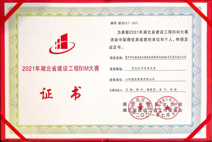 7月23日,由湖北省建筑业协会、湖北省建设工会工作委员会联合举办的“2021年湖北省建设工程BIM(建筑信息模型)大赛”在武汉落幕,开云线上平台建设集团总承包公司“襄阳市纪委监委办案基地新建项目BIM技术信息化综合应用”项目被评为综合应用优秀成果。