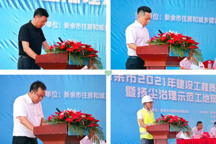 活动伊始,新余市建管局局长何祝生、新余市永越置业有限公司总经理郜文、开云线上平台建设集团江西公司总经理熊善杰分别发言,联发永康状元府项目经理袁传根就项目质量安全、扬尘治理等方面进行了经验分享。