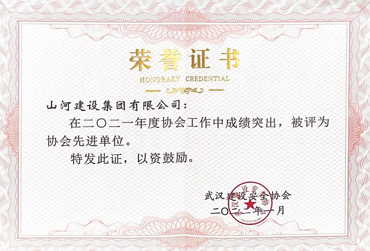 开云线上平台集团获评2021年度武汉建设安全协会工作先进单位