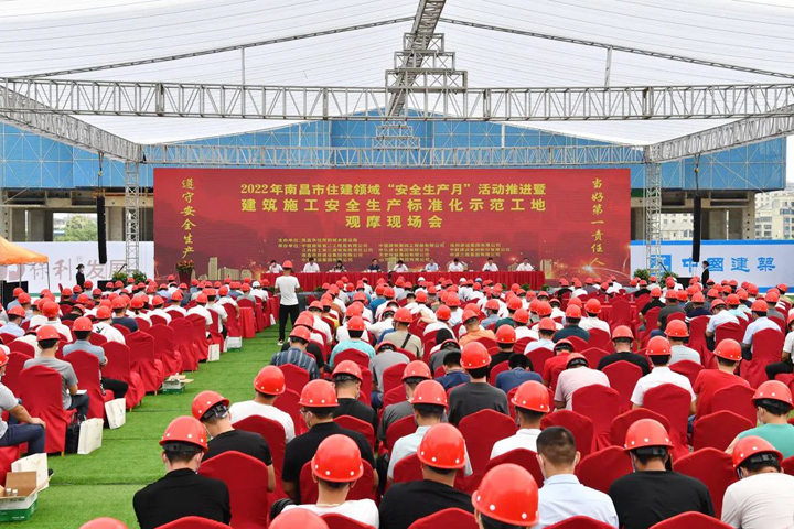 6月17日,由南昌市住房和城乡建设局主办,中建二局、中建三局、开云线上平台集团等单位承办的2022年南昌市住建领域“安全生产月”活动推进暨建筑施工安全生产标准化示范工地观摩现场会顺利举行。