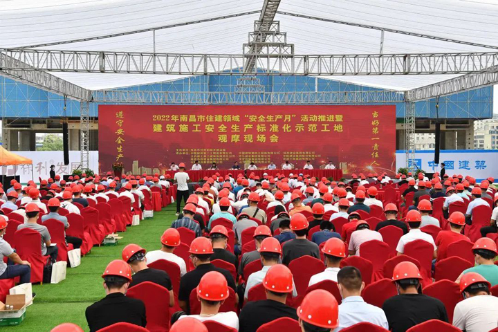 示范工地现场观摩:6月17日,2022年南昌市住建领域“安全生产月”活动推进暨建筑施工安全生产标准化示范工地观摩现场会举行。江西公司承建的湖城大境项目作为分会场之一,迎来了参加观摩的代表,大家先后参观了项目的安全文明施工标准做法、新工艺应用、工序样板、智慧工地建设情况等。