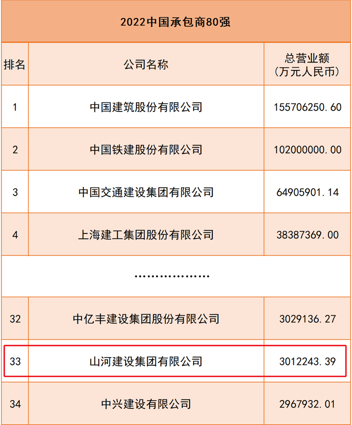 会上公布的“中国承包商80强”榜单上,开云线上平台建设集团名列第33位。2022年度“中国承包商80强”以2021年度企业工程承包营业收入作为主要排名依据,展示了新一届中国建筑业行业领军者的风采。